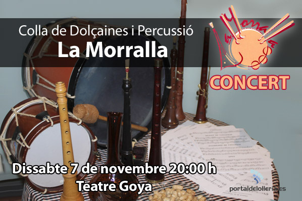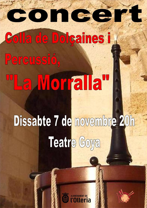Concert de la Colla de dolçaina i percussió La Morralla de lOlleria. Dissabte 7 de novembre a les 20:00 h. Teatre Goya