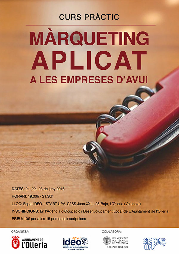L’Ajuntament de l’Olleria, en col·laboració amb el campus d’Alcoi de la Universitat Politècnica de València, han organitzat un Curs pràctic de Màrqueting aplicat a les empreses d’avui.