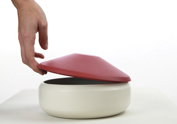 “Volcano” es una colección de contenedores decorativos diseñada para guardar todo aquello que nos importa. El diseño de este producto está centrado en el usuario, trata de equilibrar el caos en el hogar creando orden, sutileza y belleza. El interior de los contenedores de cerámica está diseñado para una mejor distribución de los objetos facilitando así la visión del usuario al dejar y coger los productos. La ligera tapa de madera sobresale sutilmente del recipiente ayudando al usuario a levantarla con facilidad.