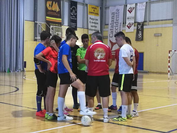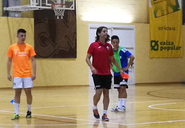 De vesprada va ser el torn de ponencia de Manolo Moya, entrenador de Montpelier frances i nombrat per entrenadors i jugadors de la lliga D1, millor entrenador de França 2016/17. Ademes d´entrenar a categories base del Barça, este xic lliçenciat en ciencies de l´esport va exposar a l´aula, jocs per a millorar amb els xiquets moviments claus en la evolució dells al futbol sala i despres la practica amb joc real a la pista.