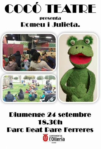Cocó Teatre presenta el proper diumenge 24 de setembre, al parc Beat Pare Ferreres, l’obra infantil “Romeu i Julieta”. La funció començarà a les 18:30 h