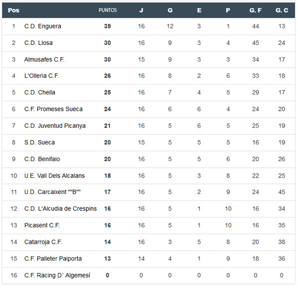La propera jornada s’espera un altre rival complicat i bastant conegut pels ollerians per la “duresa” del seu joc, el CD Chella que es troba “adossat” a un punt de distància, i porta les mateixes pretensions d’arribar al segon classificat, el CD Llosa, que va derrotar en aquesta jornada.