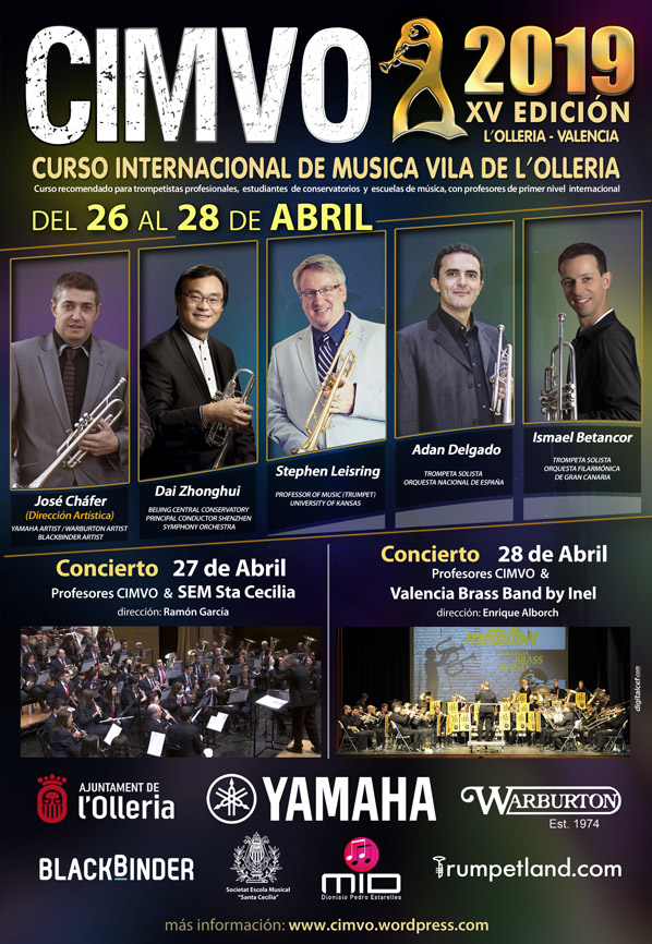 La SEM Santa Cecilia L’Olleria, dirigida por Ramon Garcia Soler realizará el sábado 27 de abril un concierto junto a algunos de los profesores que tendremos en esta XV edición 2019. En el concierto Jose Chafer interpretará la obra “Spices” compuesta por Saül GS (que el mismo jose chafer estrenó en la pasada 43 ITG Conference en San Antonio – Texas) y los profesores Steve Leisring y Dai Zhonghuii nterpretaran la obra Mystic Warriors del compositor Allen Vizzutti.