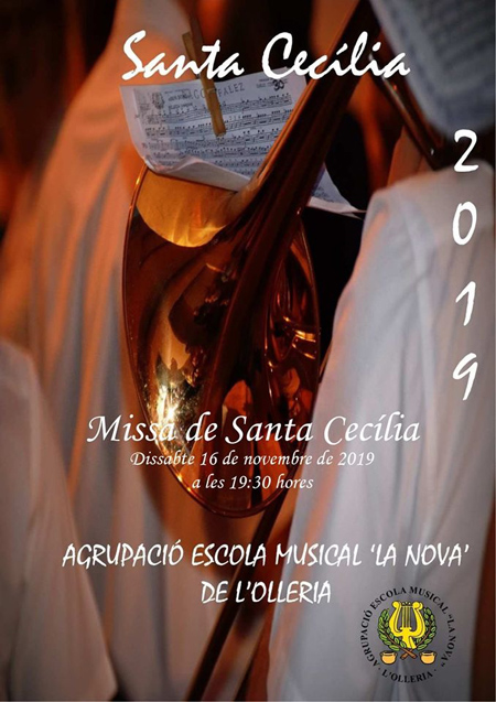 En aquestes dates que s’aproxima la festivitat de Santa Cecília, patrona de totes les bandes de música, comencen els actes de la seva commeració, per part de l’AEM La Nova de l’Olleria. Demà dissabte és el torn de la incorporació de nous músics a la banda, i la celebració d’una missa amb la participació de el cor de l’agrupació, a partir de les 19: 30h al Santuari de la Virge de Loreto. Tot seguit l’AEM La Nova prosseguirà amb les celebracions celebrant un “sopar i festa” per celebrar l’entrada dels nous músics.