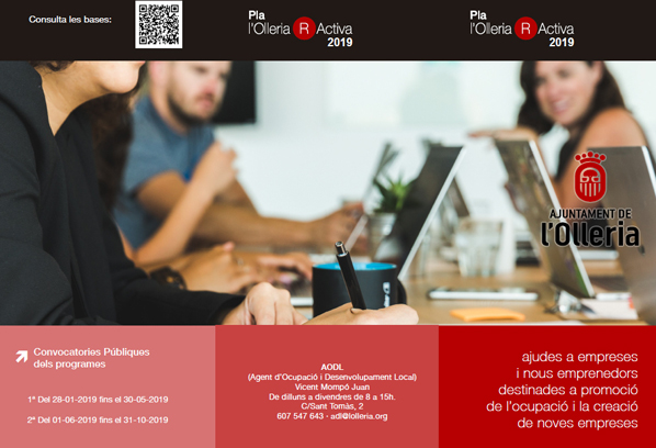 L’Ajuntament de l’Olleria va llençar fa uns mesos una nova edició del Pla R-Activa destinat a empreses i nous emprenedors, per a la promoció i creació de negocis. Un total de 24 empreses, empresaris i emprenedors s’han beneficiat d’aquestes ajudes que han ascendit a un total de 13.982,50 euros.