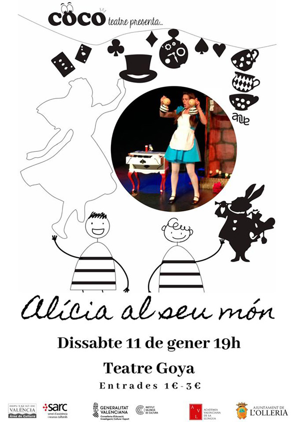 Coco Teatre presenta aquest dissabte al Teatre Goya, l’obra de teatre infantil “Alícia en el seu món”. La funció començarà a les 19 h.