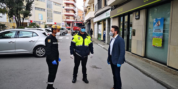 Els operaris de Serveis Municipals continuen realitzant aquestes tasques de desinfecció i neteja de carrers, contenidors i portes dels comerços diàriament per a reduir la possibilitat de propagació del Covid – 19.