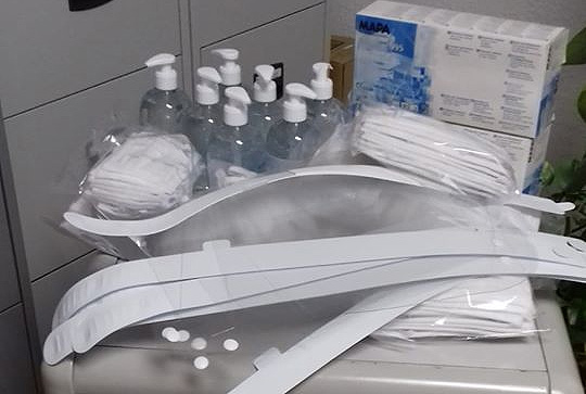 L’equipació consisteix en 8 protectors facials, 2 caixes de 100 guants, 100 màscares i 7 pots de gel hidroalcohólico.