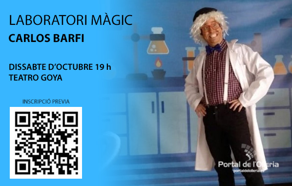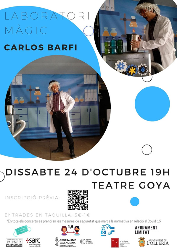 El pròxim dissabte 24 d’octubre tindrà lloc el teatre “Laboratori màgic” de la mà de Carlos Barfi a les 19 h al Teatre Goya de L’Olleria.