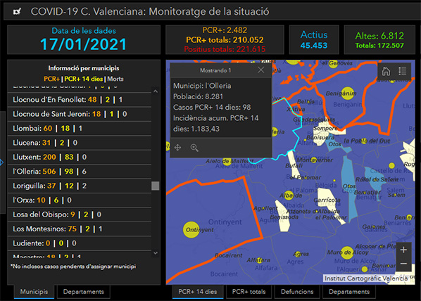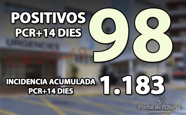 L’Olleria vive el peor momento hasta la fecha de toda la pandemia que comenzó en los primeros meses del 2020. Desde ayer según fuentes de la Conselleria de Sanitat, tenemos 98 contagiados y una incidencia acumulada que ya superó en pocos días la barrera psicológica de los 1000 para situarse en 1.183 afectados por cada 100.000 hab. (pcr+14dies).