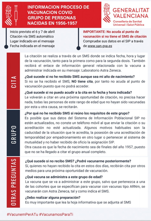La situación es de “tensa calma”, mientras por un lado se intenta propiciar las vacunaciones masivas, por otro se está a la espera de la “factura” de Semana Santa, donde se desconoce totalmente la consecuencia de los desplazamientos dentro de la Comunitat. De hecho las voces expertas se contradicen en sus vaticinios (de tantas que hay), por lo que nadie puede aventurarse a realizar un pronóstico. Puede haber una “cuarta ola” como un aumento razonable de contagios. Lo único evidente es que la distancia social, la ventilación y sobre todo la mascarilla, ayudan de forma importante a prevenir el contagio. Por lo tanto sigamos siendo responsables, y más ahora que la Comunitat Valenciana tiene la ventaja de ser una de las CCAA con menor incidencia.