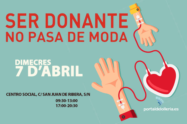 El DIMECRES 7 d’abril, al Centre Social Municipal, estarà l’equip de donació de sang en horari, de matí de 9.30 a 13.00 hores i de vesprada de 17.00 a 20.30 hores.