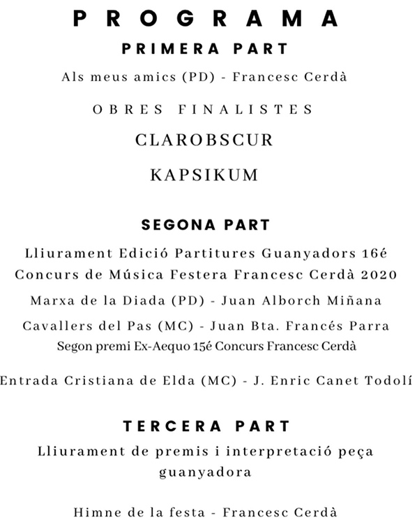 Prevista per al passat 27 de febrer, la situació sanitària va obligar a la seva suspensió fins que les restriccions ho permetessin. Aquest dia ha arribat i serà el proper dissabte 24 d’abril a la Casa Santonja a partir de les 19h. En concert se celebrarà amb les mesures de prevenció sanitària habituals, a més es ser obligatòria la inscripció prèvia per poder assistir a l’esdeveniment