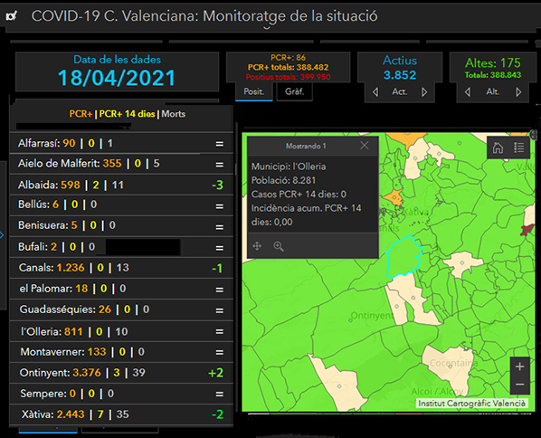 L’Olleria se mantiene a cero por octavo día consecutivo.