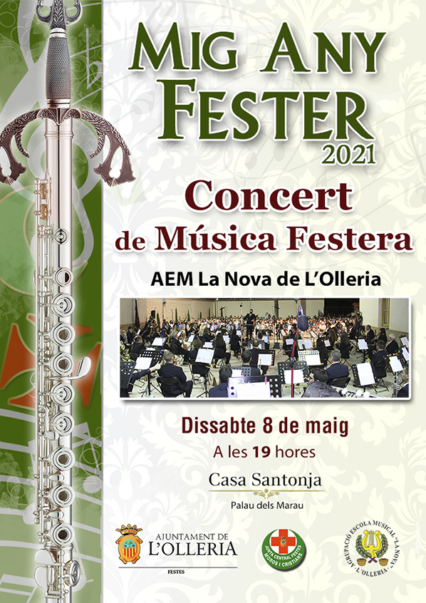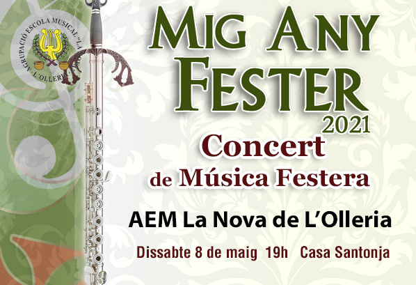 El pròxim dissabte 8 de maig a les 19 h, el pati de la Casa Santonja de L’Olleria acollirà el Concert de Música Festera del Mig Any Fester de L’Olleria de la mà de l’AEM la Nova del municipi.