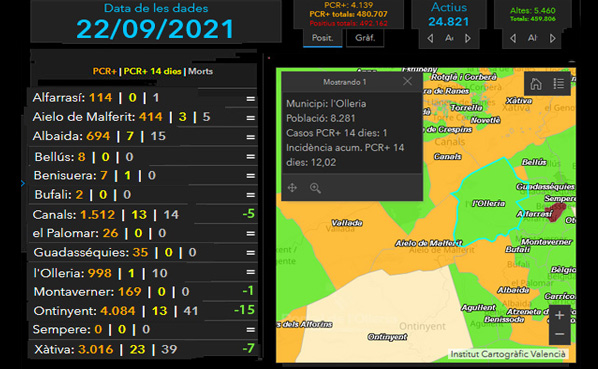 Sin novedad en l’Olleria y zonas próximas en los últimos tres dias, salvo, que Montaverner vuelve a los tan ansiados “cero” casos, y las grandes poblaciones siguen rebajando el número de afectados.