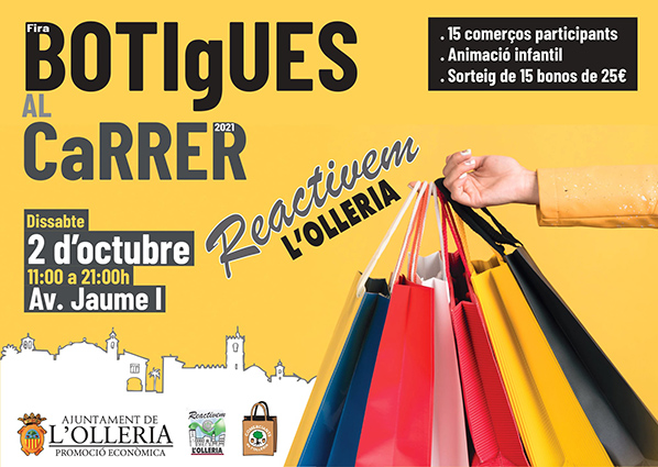 Demà dissabte 2 d’octubre L’Olleria acollirà la Fira Botigues al Carrer, tot un espectacle amb ambient, festa, animació infantil i moltes més sorpreses, organitzada per l’Associació de comerciants i patrocinada per la Regidoria de Promoció Econòmica de l’Ajuntament de l’Olleria.