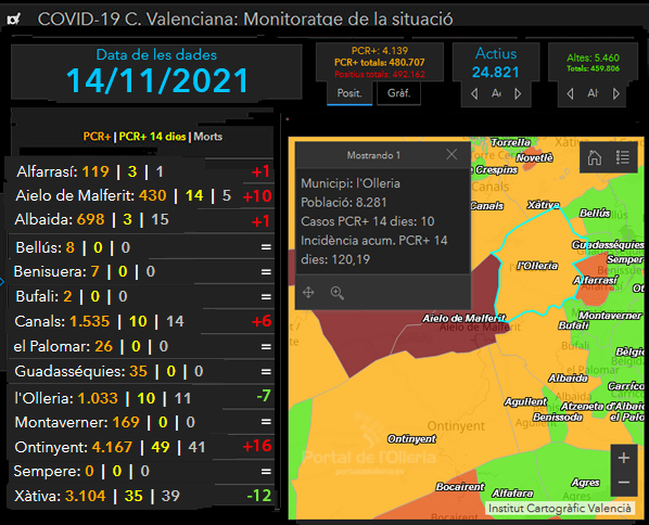 Sin embargo los registros esta vez no han sido tan benévolos con otras poblaciones próximas. Ontinyent suma otros 16 y Aielo de Malferit se dispara con 10 casos más y una incidencia que supera los 300. También significativo son los 6 casos que elevan a 10 el número de casos en Canals. Por su parte Alfarrasí y Albaida incrementan su cuenta en uno más cada una.