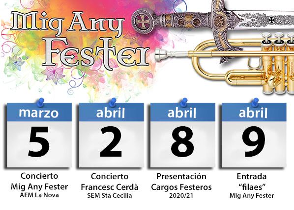 · El concert del Mig Any Fester a càrrec de l’AGRUPACIÓ ESCOLA MUSICAL “LA NOVA”, se celebrarà el 5 de març.