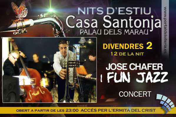 Divendres 2, a las 12 de la noche, Jose Chafer i Fun Jazz en concierto. Casa Santonja abierto a partir de las 11 de la noche. Acceso por la Ermita del Cristo.