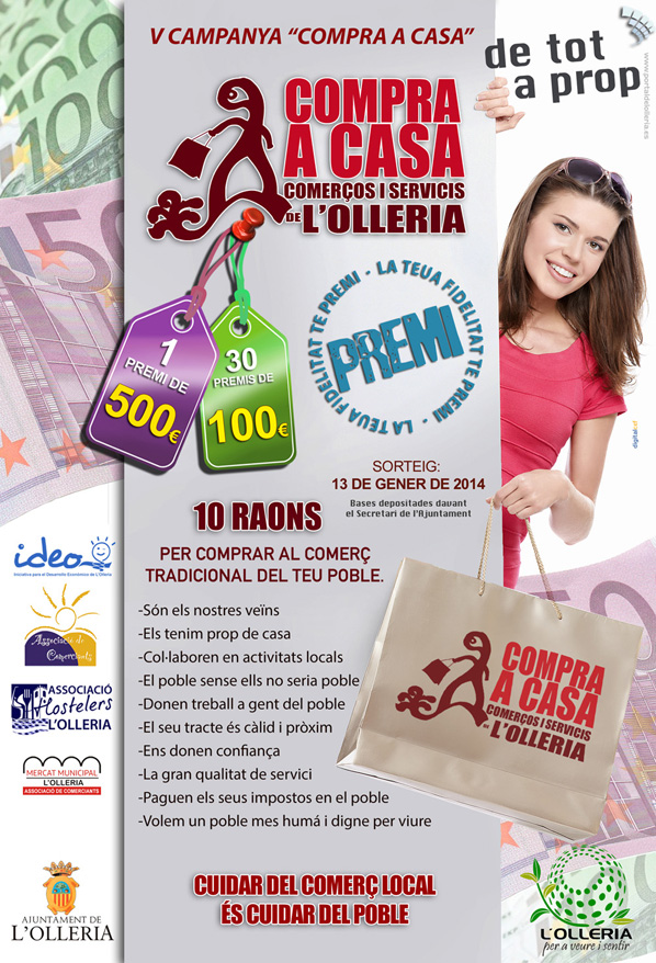 Finalment, l’alcalde agraïa la col·laboració de l’Associació de Comerciants, l’Associació d’Hotelers i l’Associació del Mercat Municipal de L’Olleria per la seua implicació i treball en esta campanya que esperem supere les xifres de les anteriors edicions” i recordava que “en la passada es van repartir prop de 60.000 paperetes”. Enguany el sorteig es realitzarà el 13 de gener del 2014.