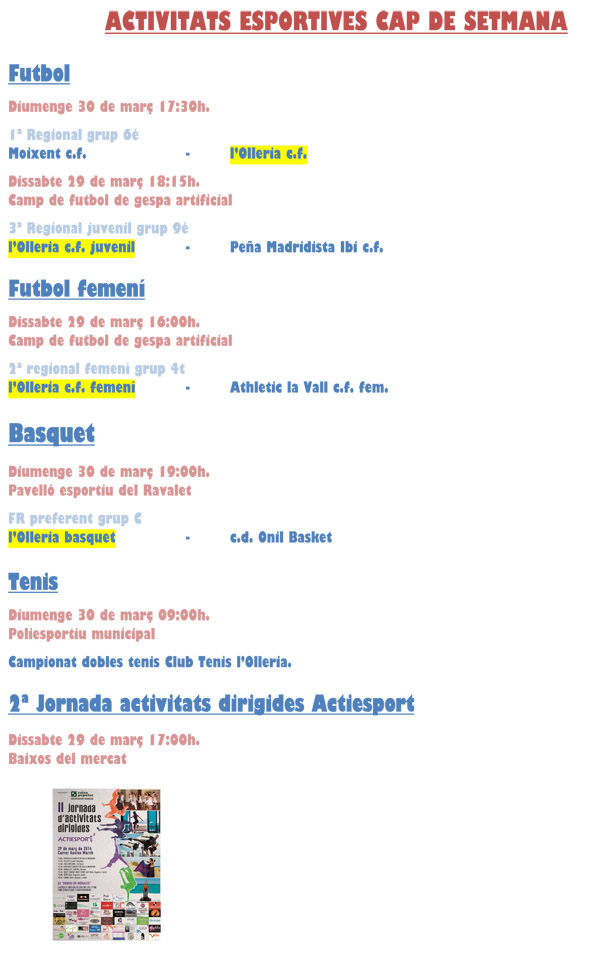 » Activitats esportives cap de setmana