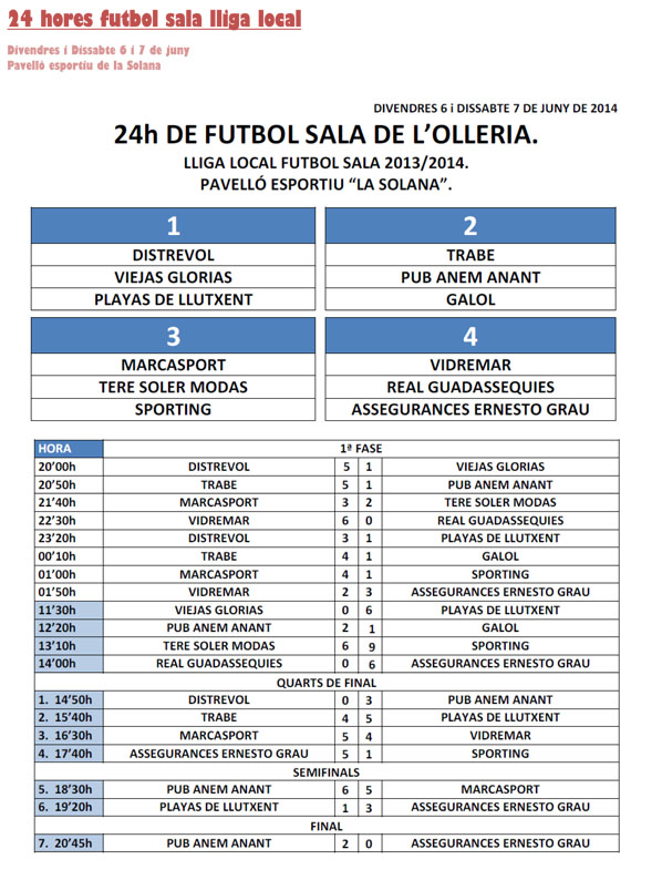 20:00h Benigànim c.f. “B” infantil 2-0 l’Olleria c.f. infantil