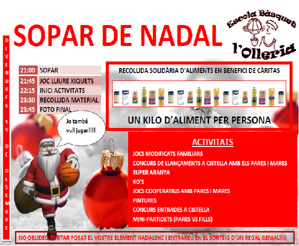 22:15h Concursos i activitats: tir a cistella, KO’s, entrades a cistella, partits pares-mares/fills, i molts més…