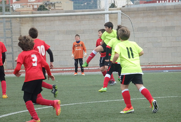 La coincidència del color roig en els equipatges va fer que els nostres jugaren amb la segona equipació de color fluor. Dels quatre enfrontaments de Futbol 8 , tan sols van guanyar per 1- 3 els Benjamins “B” en un dels millors partits de la temporada i amb empat a tres va concloure el partit dels Benjamins “A” que continuen líders i sense perdre cap partit.