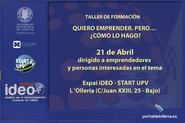 Dimarts 21 Abril: 11: 00-13: 00 Lloc d’impartició ESPAI IDEO-START UPV DE L’OLLERIA. C / JUAN XXIII, 25