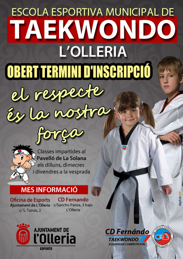 Abierto plazo de inscripción para la «Escola Esportiva Municipal de Taekwondo», Los interesados se pueden informar tanto en la oficina de deportes del Ayuntamiento (planta baja), asi como el gimnasio de la c/Sancho Panza, 3 sede del CD Fernando.