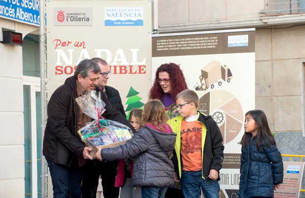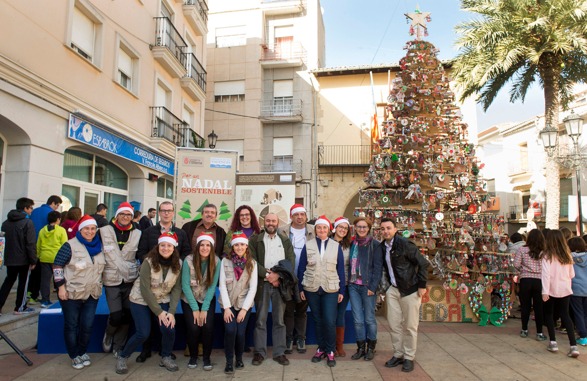 L’Olleria ha querido impulsar la creatividad de los escolares y miembros de las asociaciones locales con la campaña de la Diputación de Valencia “Per uns Nadals Sostenibles, en la que se han recogido un total de 1.000 residuos que se han reutilizado para adornar un gran árbol de Navidad, elaborado con madera procedente de restos de embalajes y con certificación de cultivo sostenible, instalado en la Plaza de la Vila de la localidad de la Vall d’Albaida.