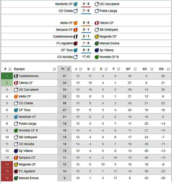 La próxima jornada, la primera de la segunda vuelta, puede ser determinante. Para empezar, el Castellonense, recibe a L’Olleria, donde practicamente se juega el ser o no ser en sus aspiraciones, ya que una derrota lo alejaría a seis punto del liderato, frente al único equipo que hasta la fecha ha conseguido ganarle.  Pero la misma jornada depara otro enfrentamiento, Idella y Carcaixent a dos y un punto respectivamente del segundo se enfrentan entre si.  La próxima jornada puede ser tan maravilloso como horrible para los intereses locales. El doble duelo entre los cuatro primeros puede mantener el compacto grupo de cabeza, como romper la dinámica por la lucha del primer puesto.
