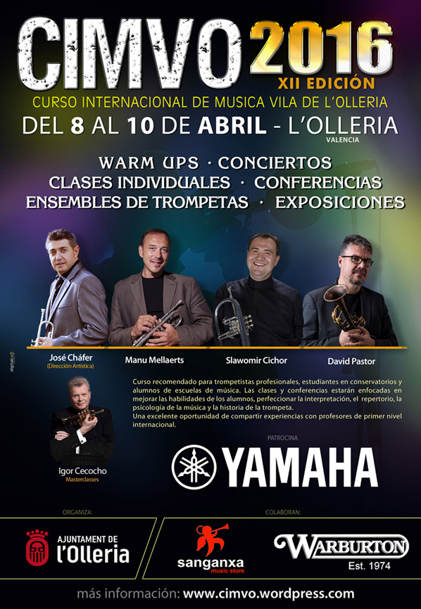 El Curso Internacional de Musica Vila de L’Olleria ( CIMVO ), que este año celebra su XII edición, es un evento académico y artístico. El calendario del curso incluirá; clases individuales, colectivas, conferencias, exposiciones y, conciertos. Está abierto para trompetistas profesionales, estudiantes en conservatorios y alumnos de escuelas de música. Las clases y conferencias estarán enfocadas en mejorar las habilidades de los alumnos, perfeccionar la interpretación, el repertorio, la psicología de la música y la historia de la trompeta.