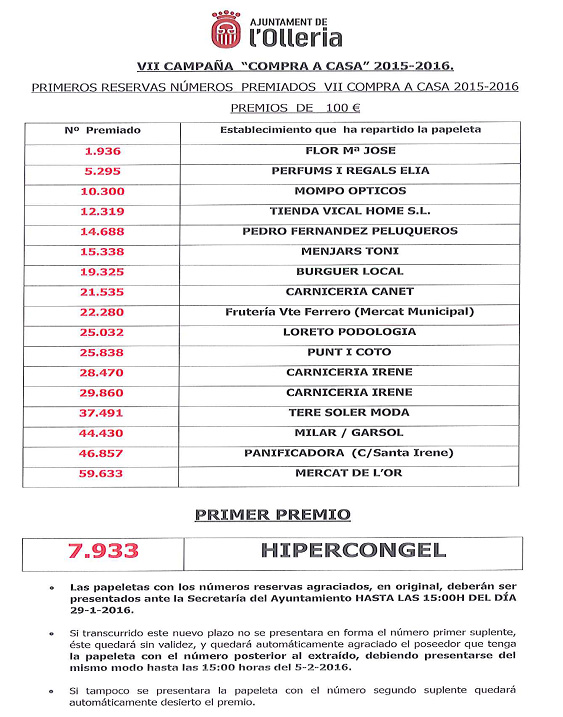 Noticia relacionada:  Listado de números premiados en la VII Campaña «Compra a Casa»
