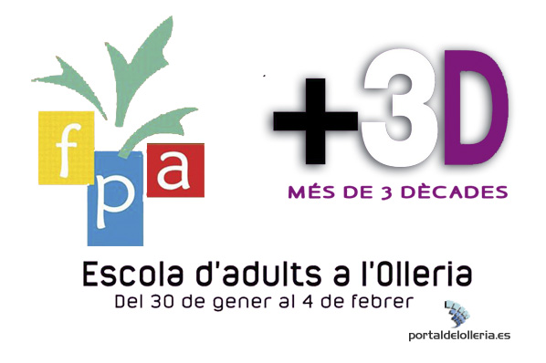 Entre los días 30 de enero y 4 de febrero se desarrollará el programa ‘Más de 3 décadas de la Escuela de Adultos’. Durante estos días se sucederán diferentes actividades, todas ellas abiertas al público. Os esperamos!
