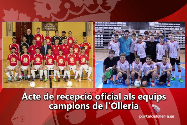 Los equipos de l’Olleria que se han proclamado campeones esta temporada, concretamente el Inmevasa l’Olleria f.s. y el Equipo infantil de la escuela deportiva de fútbol sala, serán recibidos oficialmente como CAMPEONES en el antiguo ayuntamiento el sábado día 21 de mayo. La recepción oficial será a las 20 h. y en ella está previsto que hablen algunos de los jugadores, así como del equipo técnico y autoridades municipales.