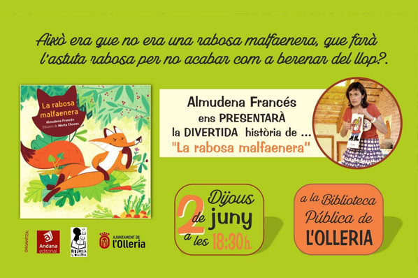Almudena Francés vuelve a l’Olleria, en esta ocasión para presentar su libro «La rabosa malfaenera». La narración de tan divertida historia será este jueves , a partir de las 18:30h en la Biblioteca Municipal.