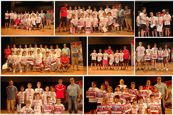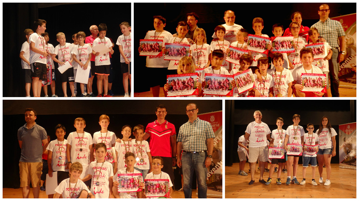 Como todos los años, al finalizar la temporada, la Escuela Municipal Fútbol Base de l’Olleria realiza el acto de clausura en el Cine Goya con la asistencia de todos los integrantes, familiares y amigos. Un ambiente festivo y emotivo que rodea a uno de los momentos más tradicionales y emblemáticos de la Escuela, al inicio repartimos unas camisetas y posteriormente, todos en sus asientos, y con mucha espectación comenzó la proyección de un video resumen de lo que han sido las mejores imágenes de la temporada, recuerdos inolvidables y gratificantes. A continuación, se realizó un sorteo de unos banderines con el escudo del Valencia C.F. que nos dieron en la visita a Mestalla. Luego fué el turno de palabra para el Concejal de deportes, David Millán y el Alcalde, Juliá Engo que elogiaron el trabajo y dedicación de todos los miembros de la Escuela, una vez finalizada sus intervenciones, cada uno de los siete equipos subieron al escenario para recibir una foto y una medalla conmemorativa. También fueron premiados tres representantes de cada equipo: a la mejor progresión, más regular y mejor actitud; añadiendo este año el premio a la mejor progresión en los porteros. La tradicional foto de familia, con todos los integrantes y entrenadores sobre el escenario, dio por concluida una temporada muy positiva.
