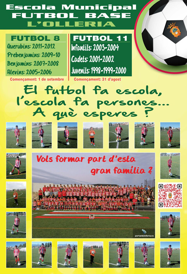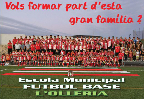 Coincidint amb les festes patronals al nostre poble, comença la campanya de captació per al futbol base l’Olleria. Tornem amb il.lusions renovades i els tres pilars que utilitzem com arguments més sòlids són : escola – persones i família, considerem que l’educació – formació esportiva i personal són innegociables, així com el tracte semblant al d’una família unida en els bons i dolents moments és el exemple a seguir.