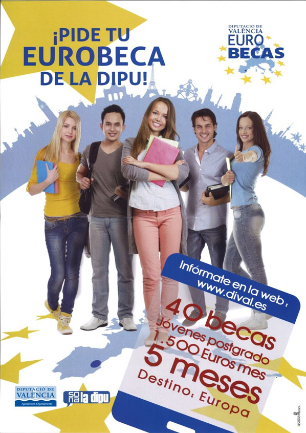 La Diputación de Valencia ha lanzado el programa La Dipu te Eurobeca, que contempla una serie de subvenciones para la realización de becas de formación para jóvenes de postgrado en el extranjero, concretamente en instituciones europeas. Las áreas sobre las que se realizará la programación de las becas, de acuerdo a las necesidades de las instituciones europeas, son: Desarrollo regional y urbano; Empleo e inclusión social; Eficiencia energética; agenda digital; formación, educación, juventud y deportes; participación ciudadana e igualdad.