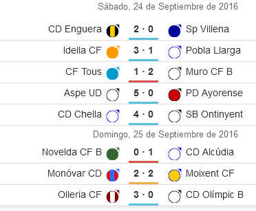 | 14 | Sp Villena | 0 | 2 | 0 | 0 | 2 | 0 | 4 | -4 |
