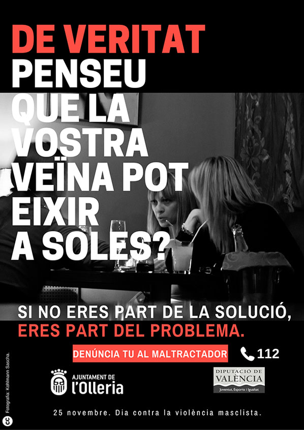 La puesta en marcha del plan va acompañada del lanzamiento de una campaña de cartelería para concienciar a la población de que la violencia de género es un problema de todos y no sólo de las víctimas. «Con iniciativas como ésta intentamos que l’Olleria no haya gente que padezca ningún tipo de violencia de género, y queremos incidir en la idea de que si no eres parte de la solución eres parte del problema, y entre todos debemos intentar resolverlo. «, explica Juliá Engo, Alcalde de l’Olleria.
