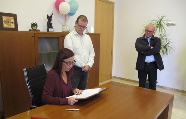 La vicepresidenta de la Diputación de Valencia, Mª José Amigó, ha estado hoy en l’Olleria visitando diferentes inversiones que la institución provincial está haciendo en la localidad. Antes, fué recibida por el equipo de gobierno en el Ayuntamiento donde ha firmado en el libro de honor.