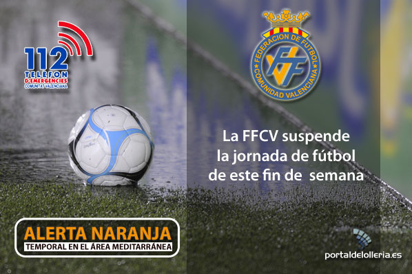 La alerta naranja activada hoy por los servicios de la Generalitat Valenciana, unida a las recomendaciones y actuaciones de las diferentes administraciones públicas locales y regionales obligan a la FFCV a tomar esta medida preventiva para evitar cualquier contratiempo en los desplazamientos programados por los clubes para disputar esta jornada.