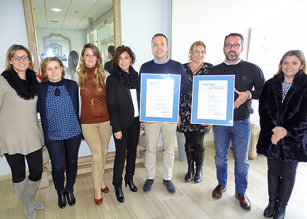 Los representantes de TÜV Rheinland, han hecho entrega de los certificados ISO 14001 de gestión medio ambiental y el de Accesibilidad Universal al equipo directivo de Solimar formado por los directores de cada uno de los siete centros (Massanassa, Sollana, Guadassuar, Alzira, Tavernes de la Valldigna, Daimús y Olleria), el director de operaciones, Pablo Bosch y los consejeros delegados Marcos Penadés y Eugenio Pérez Mifsud.