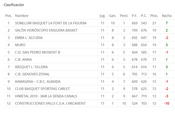 Disputado encuentro la matinal del domingo entre Bàsquet l’Olleria y el CD San Pedro Moixent «B», en el que los locales se impusieron por siete puntos. Margen de puntos que predominó la mayor parte del encuentro, si bien los de Moixent estuvieron cerca de reducir las distancias al mínimo en el penúltimo cuarto. Con esta victória los ollerienses enganchan tres consecutivas que les permite situarse séptimos en la tabla empatados a puntos con el CB Anna y el propio Moixent B que ocupa el quinto puesto.