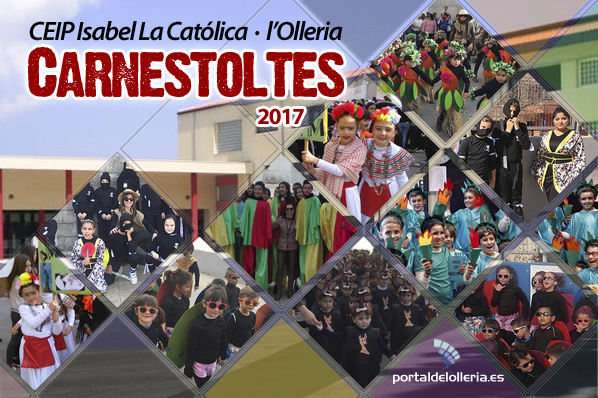 Un bon dia per gaudir de CARNESTOLTES!!! Dilluns 27 de febrer, els carrers del nostre poble per fi es van poder omplir de disfresses, rialles, música, cartells, salutacions i agraïments dels xiquets i les xiquetes de L’Olleria. La desfilada dels mes menuts de L’escoleta, de Sanchis Guarner i de Isabel la Catòlica va ser un acte que totes les families i veïns del poble gaudiren amb orgull. Aquest any, per a la nostra escola Isabel la Catòlica, ha sigut emblemàtic el tema «LA VOLTA AL MÓN», és per això que totes les disfresses han estat centrades en valorar i respectar els valors inherents a les diferents cultures per a contribuir a la Pau del món. Així com 2017 Any del turisme sostenible. En infantil: (continent Oceania) anaven de cangurs polinesis i surfistes. Al primer cicle (continent Àfrica) anaven de tribus africanes. Al segon cicle (continent Amèrica) anaven de Mexicans, Fruda Kahlo i d’estàtua de la llibertat. Al tercer cicle (continent Asia) anaven de Ninja i Geisha. I tots els mestres anaven d’exploradors. Gràcies a tots per acompanyar-nos en el passa carrer i gaudir d’aquesta festa.