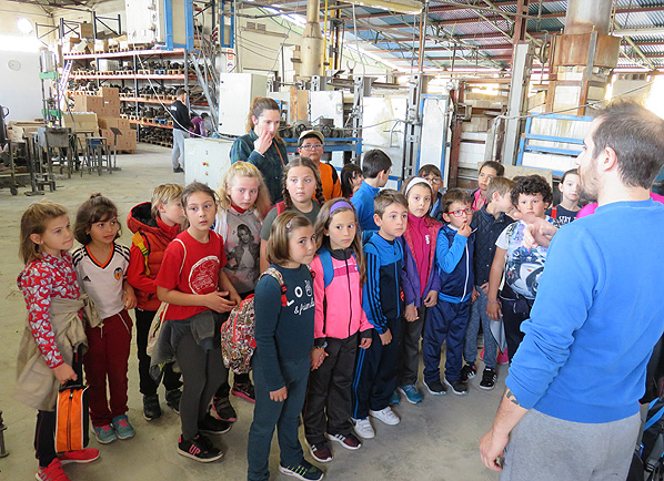 Els alumnes del primer i segon de primària han visitat hui la fàbrica de vidre «Recycleg Glass La Mediterrania». En aquesta activitat han pogut gaudir d’un dels treballs més representatiu i popular del nostre poble, la fabricació del vidre. Concretament, hui han vist tot el procés de fabricació d’uns pitxers, des que s’agafa el vidre del forn fins que la peça s’encaixa per a la seua posterior comercialització. Desprès han visitat l’exposició que hi ha dels productes que es produeixen a la fàbrica, així com algunes de les peces artesanals de l’artiste Rafa Abdón.
