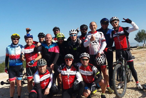 La idea era salir direccion Agullent, por Aielo, donde nuestro compañero Javier Mompo, tuvo la mala fortuna de romper el cambio y tuvo que volver. Nada mas llegar a Agullent subimos por el camino que denominamos vulgarmente Turmalet, que desemboca en el alto del Torrater. Bajamos por un camino que hacia tan solo 2 meses estaba estupendo en esta ocasion estaba desecho, imposible bajar con la bici por su regueros y destrozado. Otros compañeros bajaron un poco mas allá de este camino que en teoria era un poco mas de dificultad.